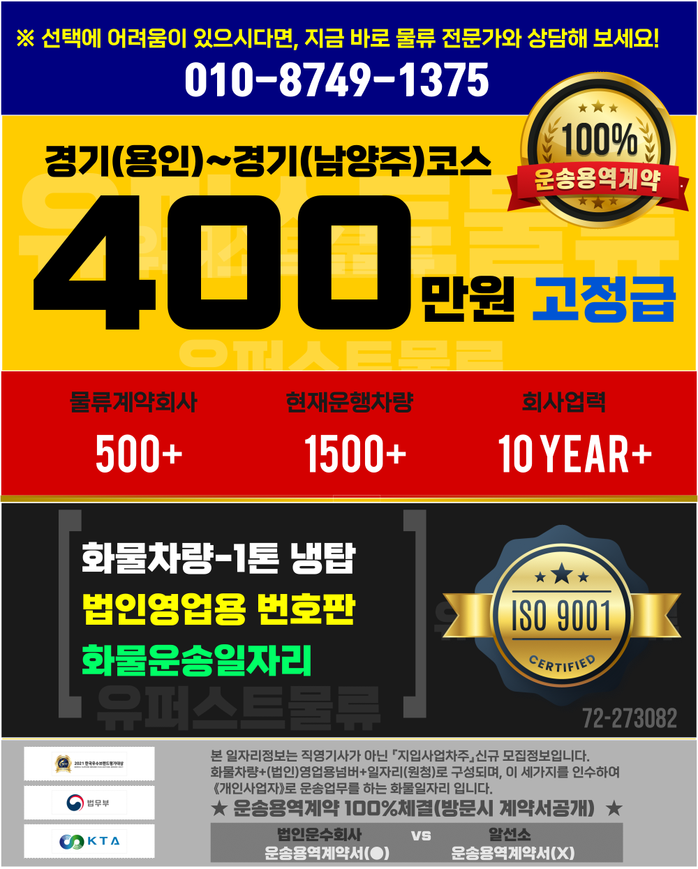 * 1년후 운송료 10만원 인상조건(계약서명시)입니다.