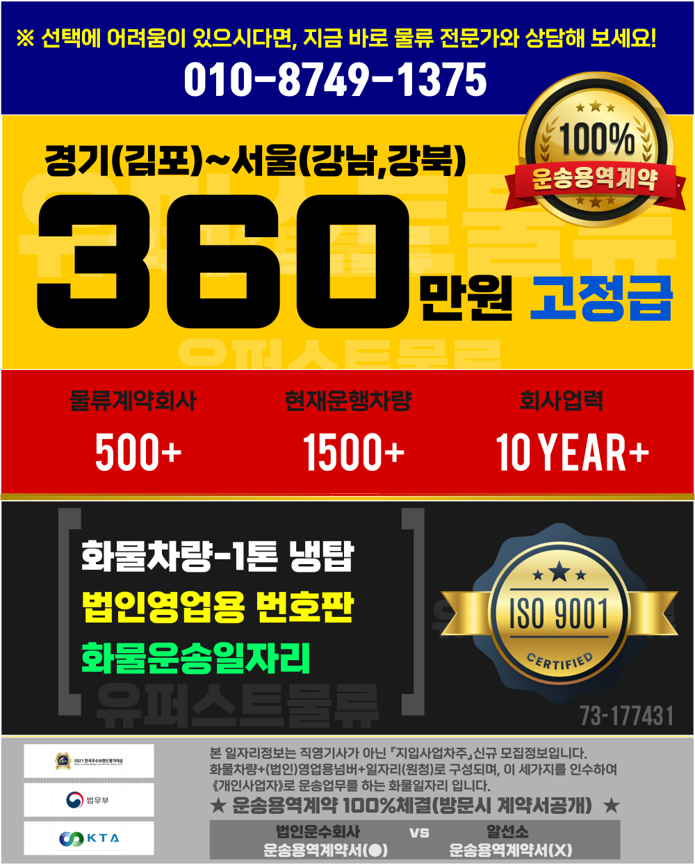 * 한번 물건 싣고 하루 10곳 내외로 배송하고 현지에서 퇴근하시면 됩니다.