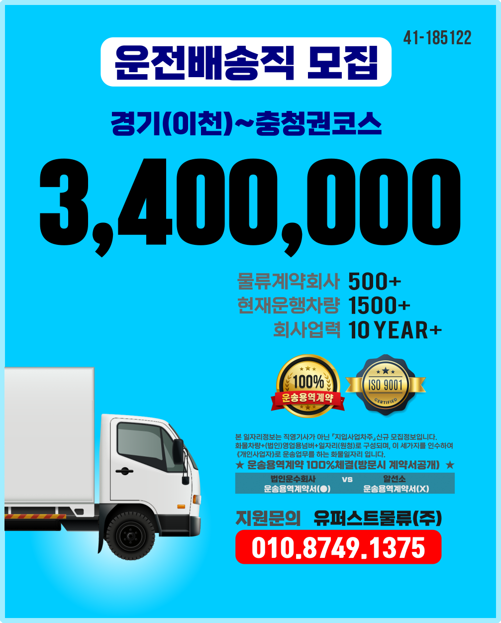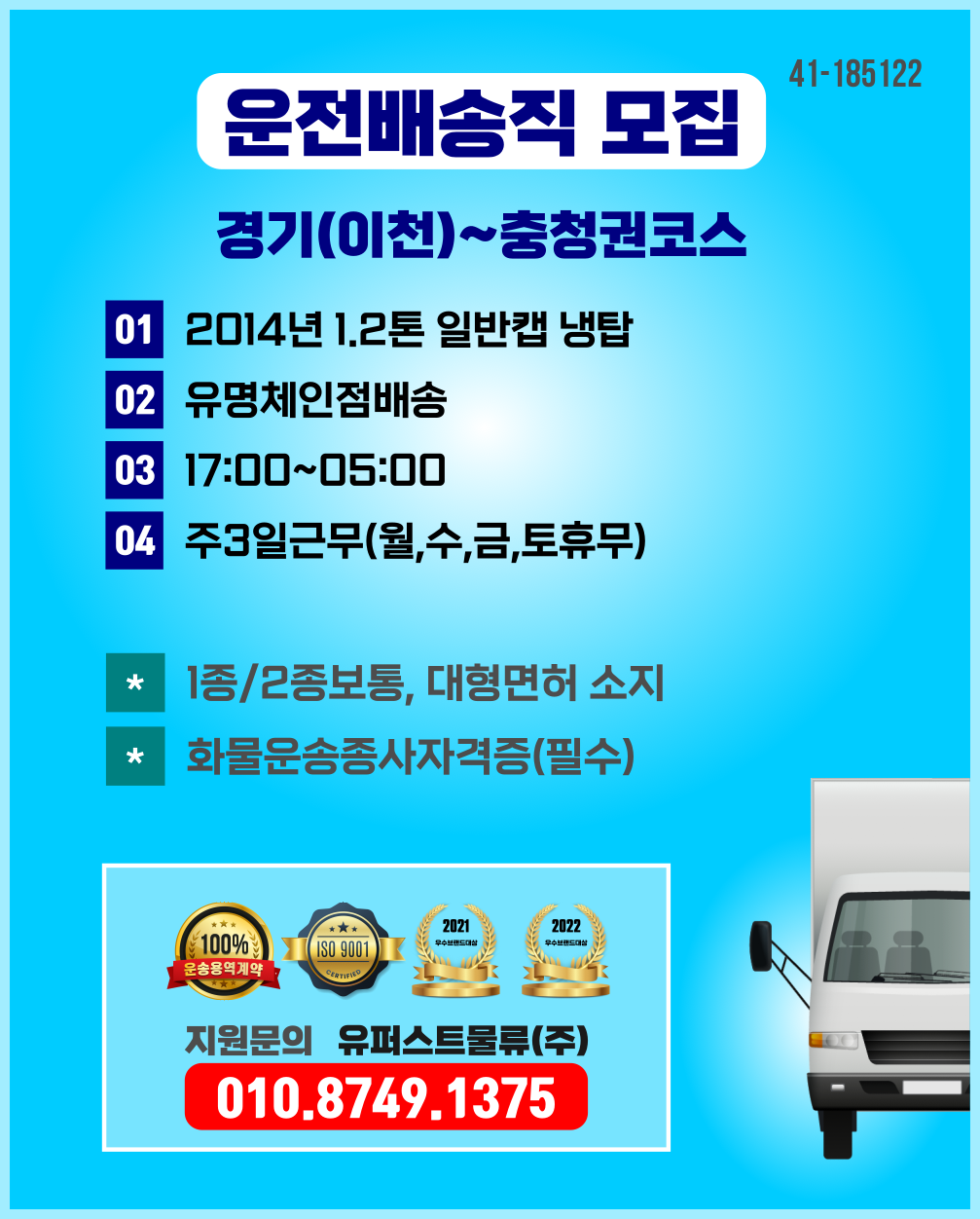1톤정보 ★유명체인점배송(17:00~05:00 현지퇴근 / 나이무관 / @투잡추가수입가능 / 증차분 ) 주3일근무 (당사차량)