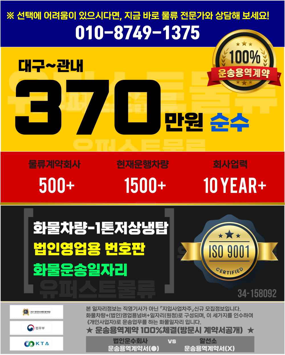 1톤정보 ★프레시물품(10:00~19:00 / 나이무관 / 차값저렴 / 오토가능 ) (당사차량)