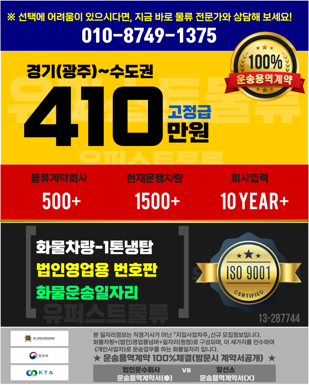 1톤정보 ★프랜차이즈물품(01:00~08:00 현지퇴근 / 근무시간 짧음 / 투잡가능 / 오토차량가능 / 증차분) 주5일근무 (…