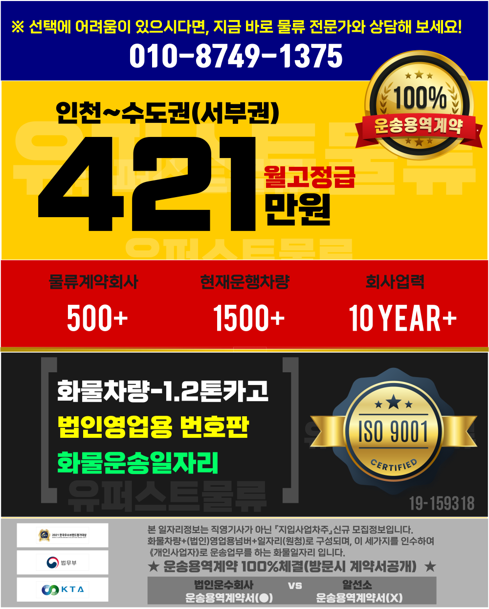 1톤정보 ★대형마트공산품 (07:00~16:00 현지퇴근 / 최고급여 / 나이무관 /증차분 ) 주5일근무 (당사차량)