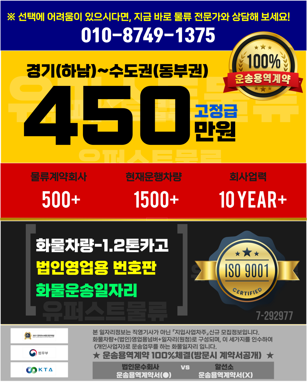 1톤정보 ★유명마트공산품(07:30~16:30 현지퇴근 / 최고급여 / 나이무관 / 증차분 ) 주5일근무 (당사차량)