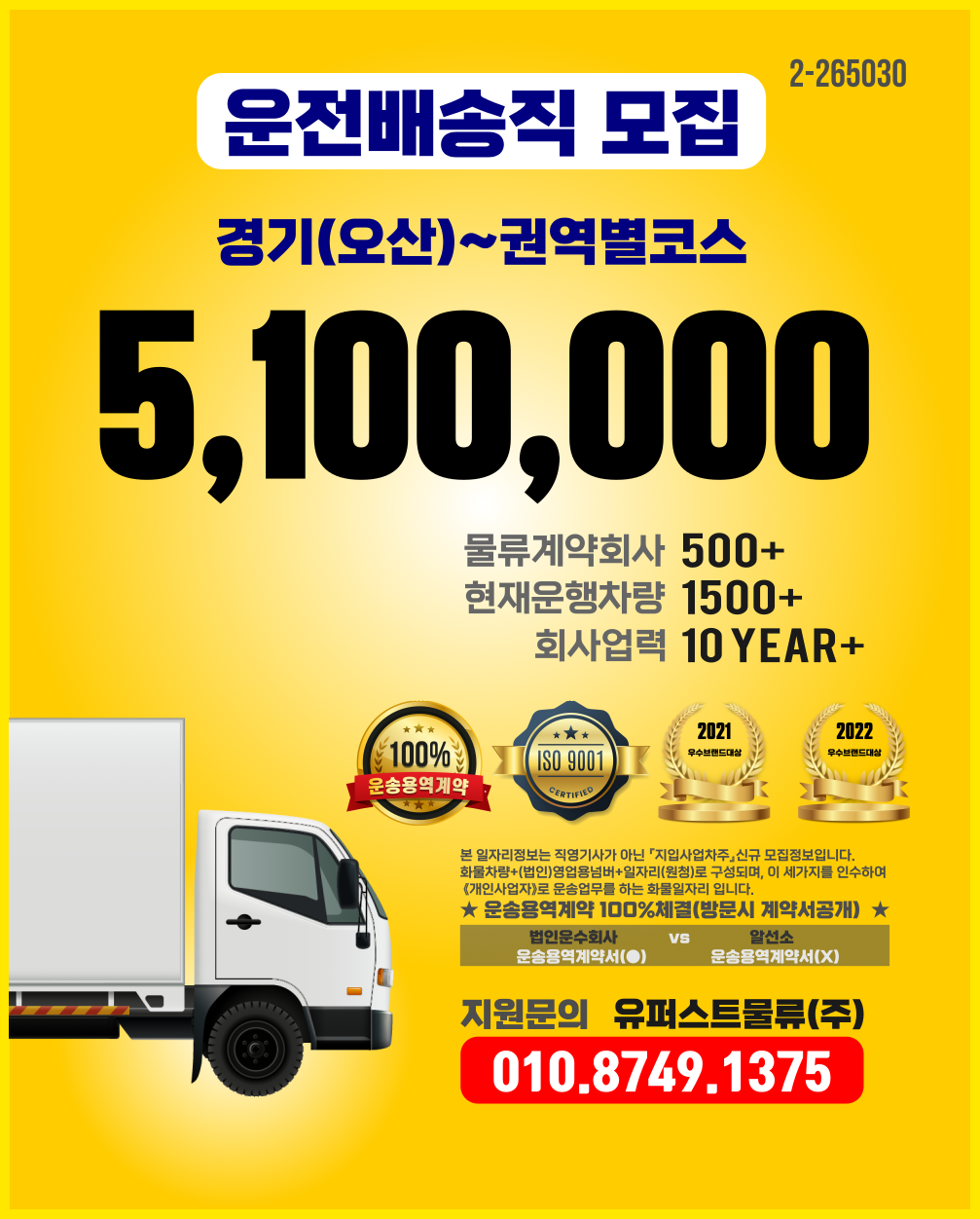 * 최소물량 80건이상 배차하여줌(계약서 명시/ 계약서 확인가능)