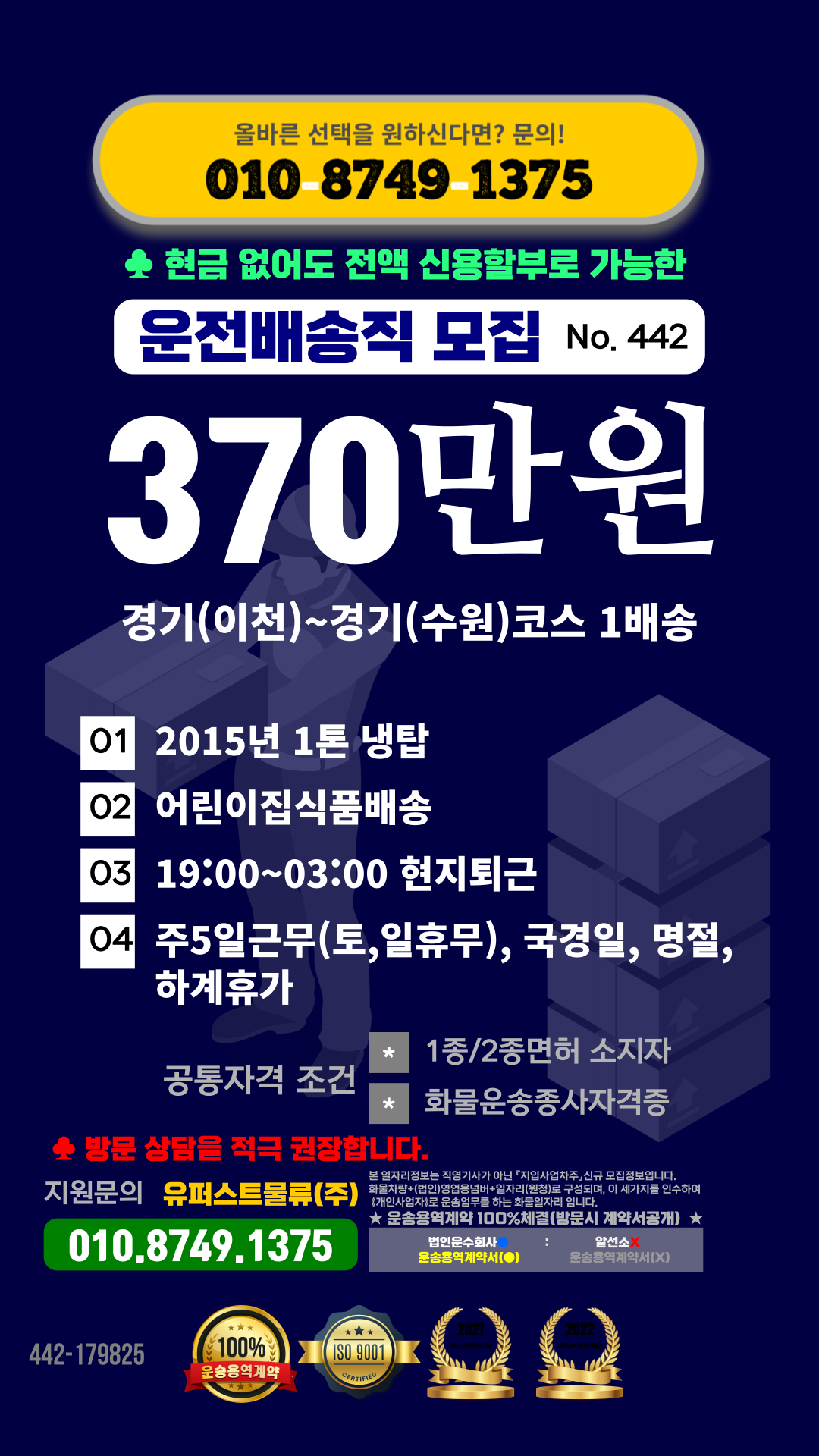 1톤정보 ★어린이집식품 ( 19:00~03:00 현지퇴근 (출근시간 조절가능)/ @ 70만정도 추가 수당가능 / 오토차량가능/ 증차분…