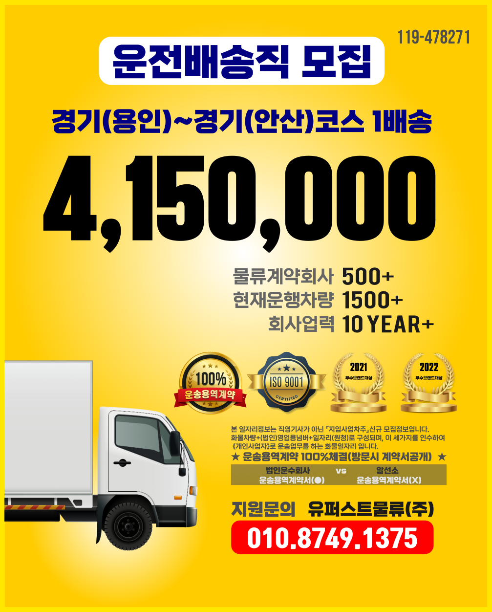 * 1년후 운송료 10만원 인상조건(계약서명시)입니다.
