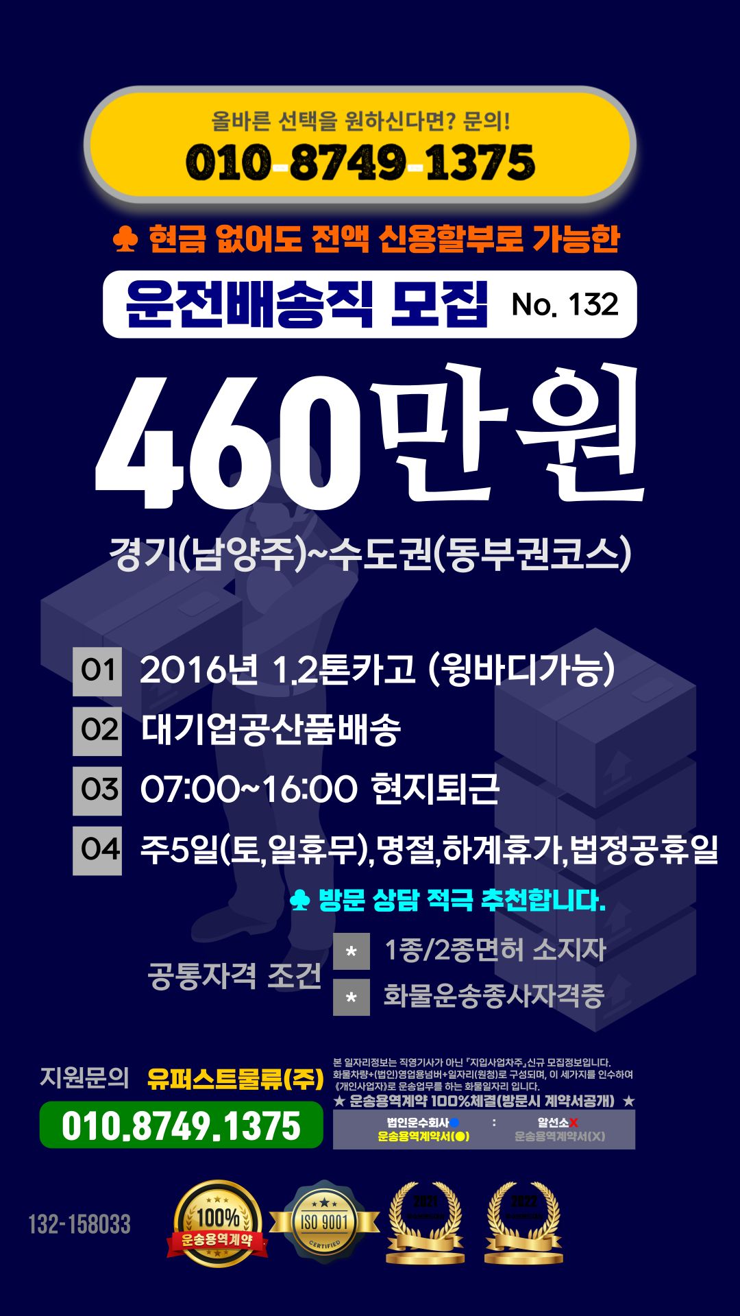 1톤정보 ★대기업공산품배송(07:00~16:00 현지퇴근 / 윙바디가능 / 월차1회 있음 / 최고급여 / 증차분 ) 주5일근무 (당…