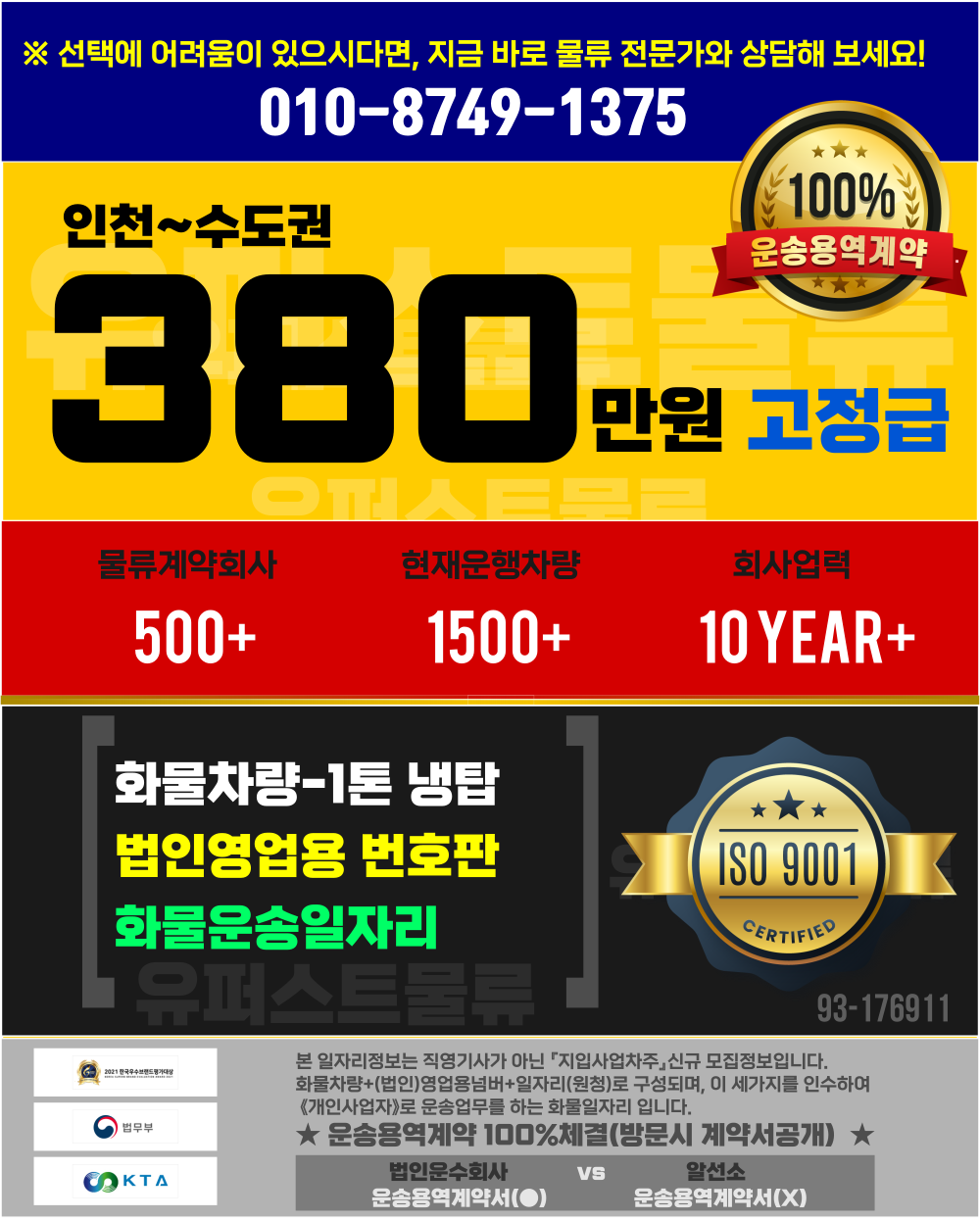* 한번 물건 싣고 하루 15곳 내외로 수도권에 배송하고 현지에서 퇴근하시면 됩니다.