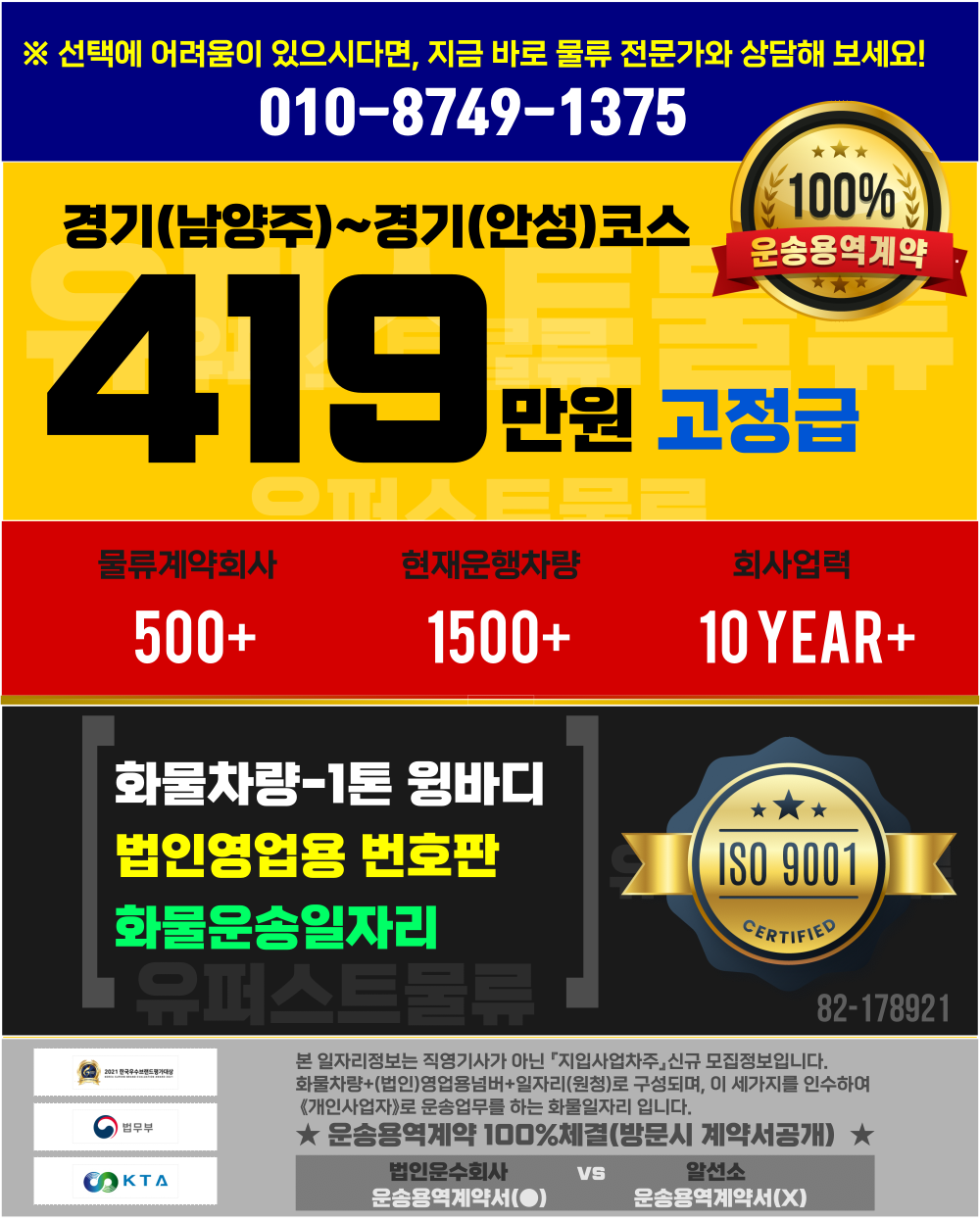 1톤정보 ★인테리어물품(박스포장) ( 08:00~17:00 현지퇴근 / 물품가벼움 / 당사차주6명 근무중 / 하계휴가 / 증차분) …