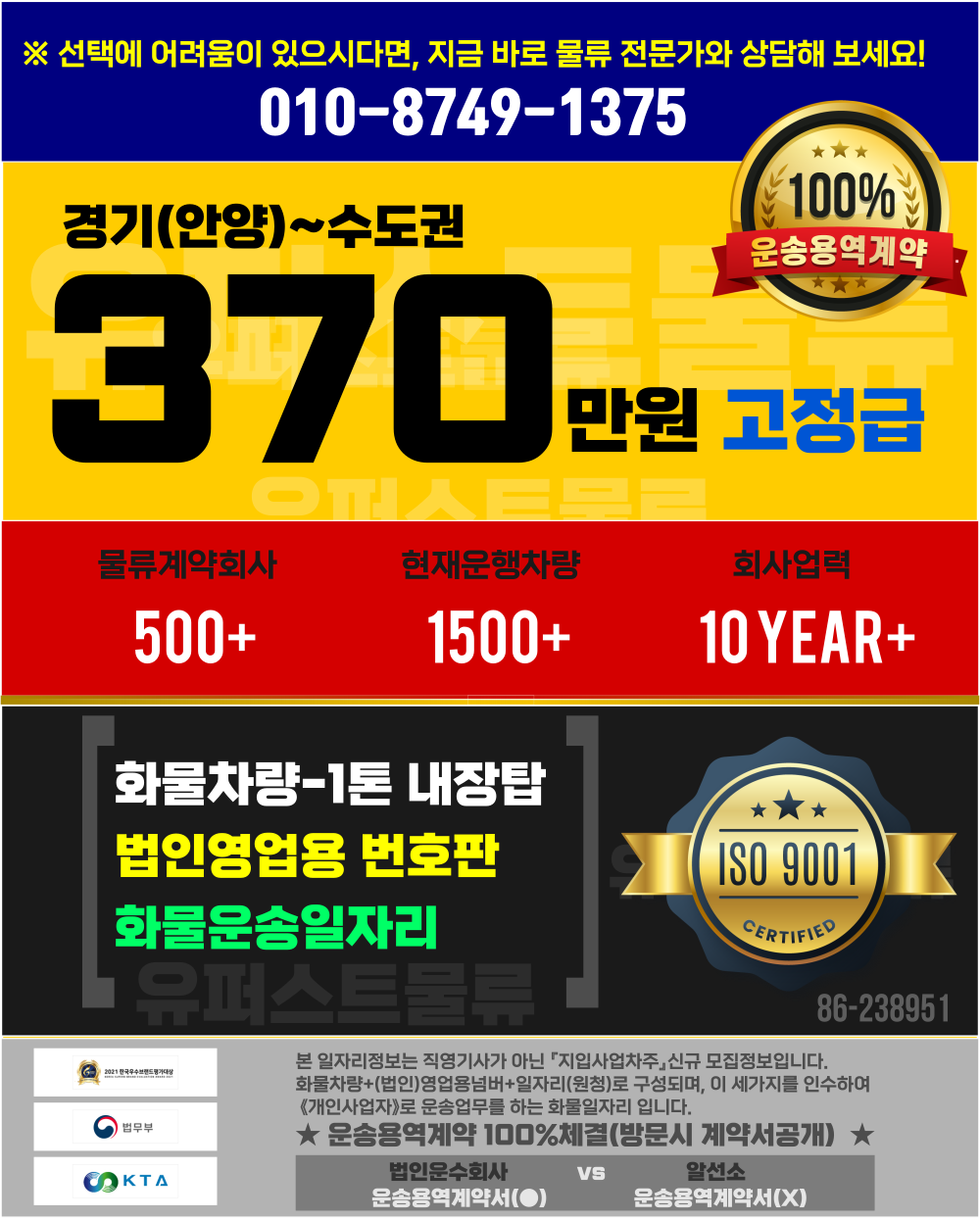 1톤정보 ★스타트업물품(경량짐)(09:00~16:00 현지퇴근 / 근무시간 짧음 / 군데수적음 / 오토차량가능 / 윙바디가능 / 증차…