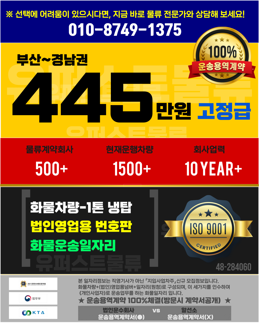 1톤정보 ★프랜차이즈물류배송 (19:00~03:00 현지퇴근 / 나이무관 / 오토차량가능 / 증차분) (당사차량)